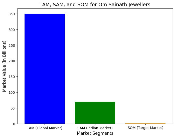 Om Sainath Jewellers can target a 1-2% market share, which equates to around $700 million to $1.4 billion in potential revenue from both offline and online retail in India.